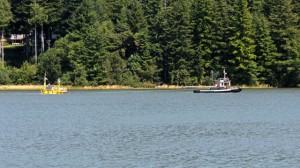 Riding a high tide Sunday afternoon, a tug pulled the Oregon State University wave energy testing device called the “Ocean Sentinel” from Toledo down to Newport where it will be prepared for the second phase of its premier journey to a spot off Yaquina Head. There it will be anchored to the bottom and will be readied to begin testing a new wave energy generating device belonging to a New Zealand energy company called WET-NZ.