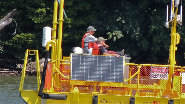 Commercial wave energy companies all over the world are trying to come up with proven wave energy designs that work, and work verifiably and reliably. For that they turn to disinterested third parties like universities and colleges that have substantial credibility as testing entities. Wave energy devices are placed in a particular region of the ocean and feed their electrical output to OSU’s Ocean Sentinel which records not only the amount of energy a device generates, but also under what kinds of wind, temperature and wave conditions. So if a particular design is certified as having reached a certain level of performance, it can make those claims more credibly to private firms or utilities in their sales information.